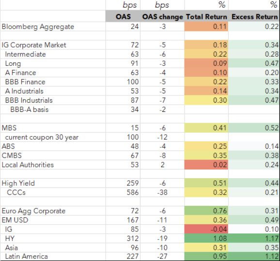 Agency MBS outperforms once again, while CMBS is a close second in positive excess, while ABS carried humbly.